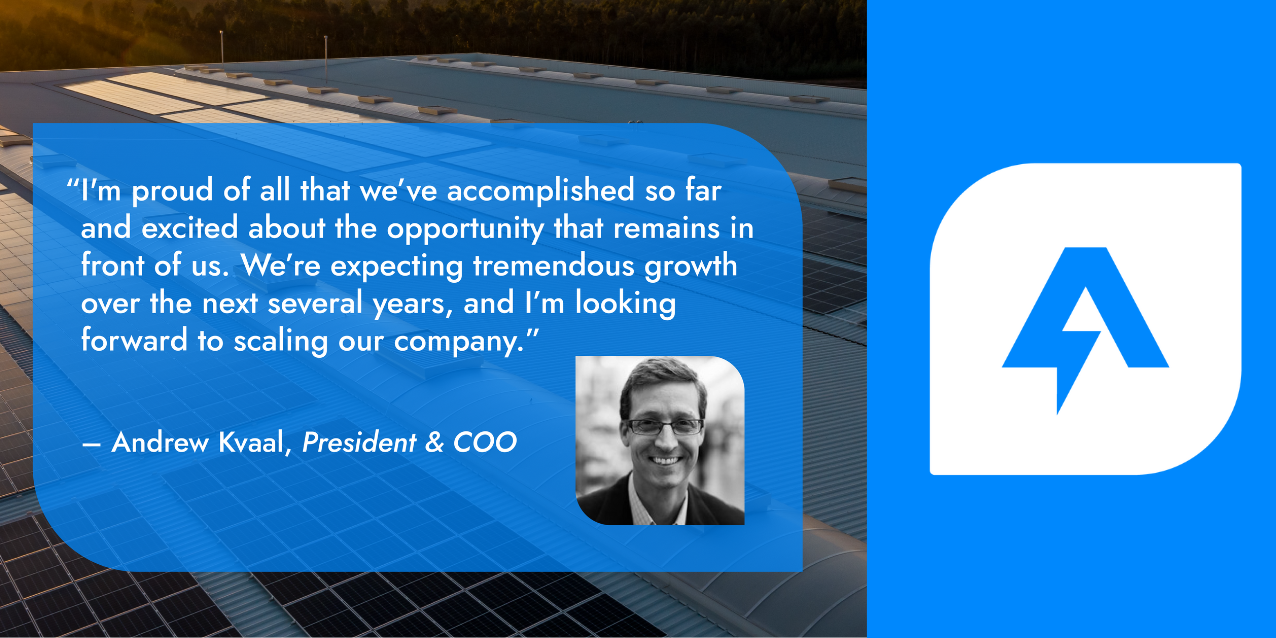 “Andrew has led a remarkable expansion in his role as COO, and this title change to President is recognition of the work he’s already been doing,” said Nate Owen, CEO and Founder of Ampion. “Under his leadership, Ampion has seen significant revenue and organizational growth, securing venture capital and venture debt financing. Andrew played a pivotal role in guiding Ampion and has been instrumental in the company’s success in attaining new talent, energy developer clients, and community solar subscribers.”